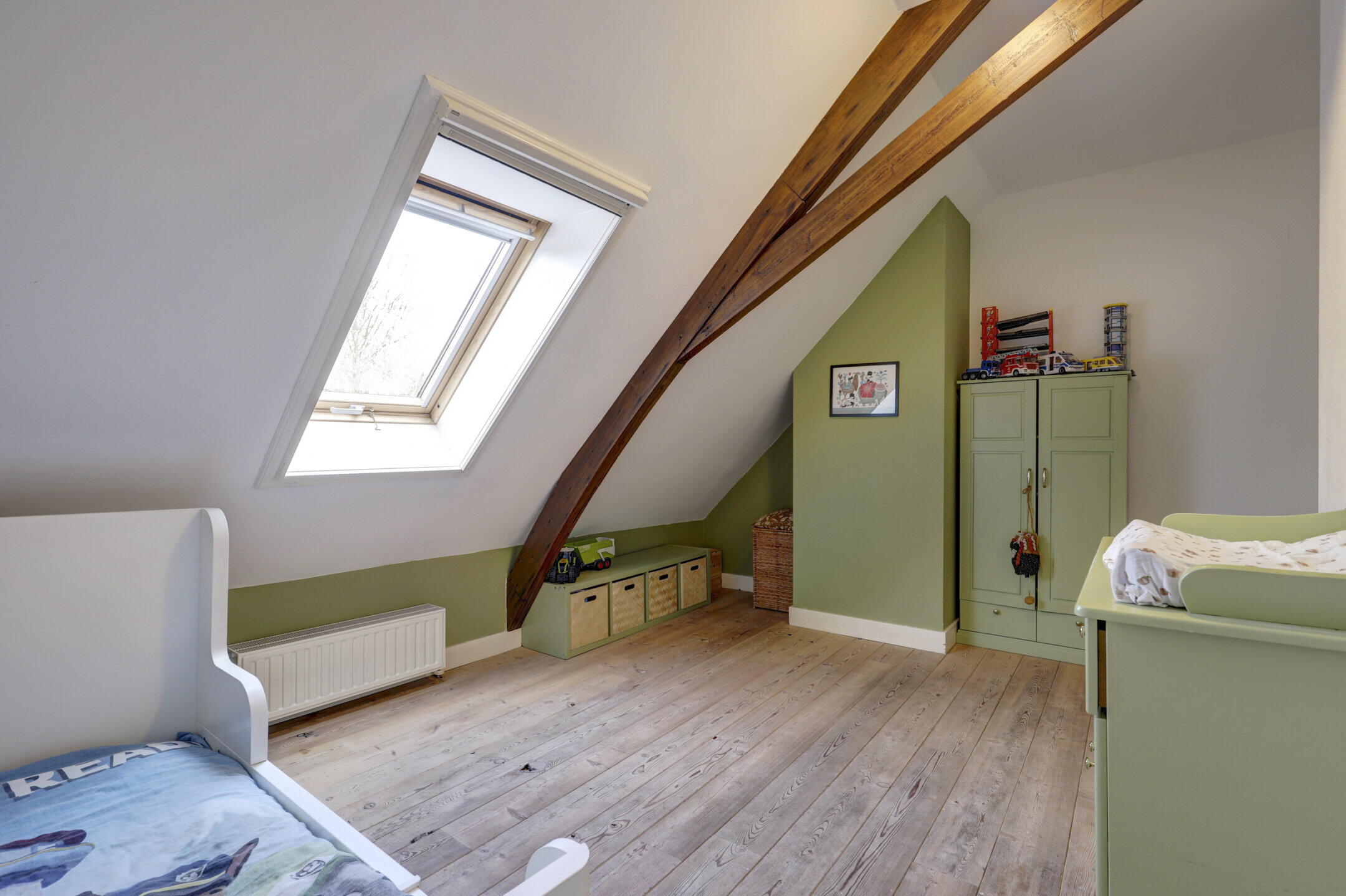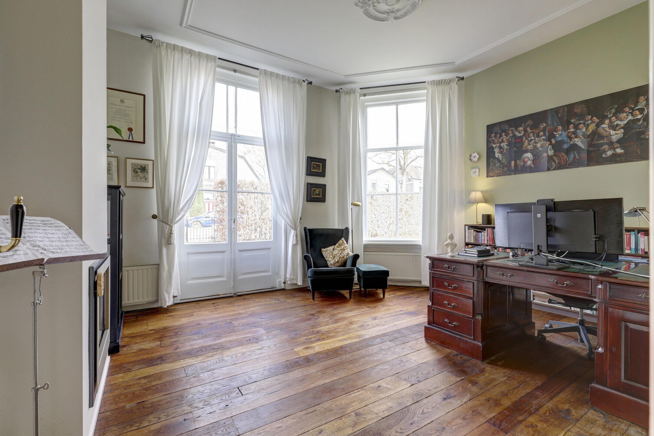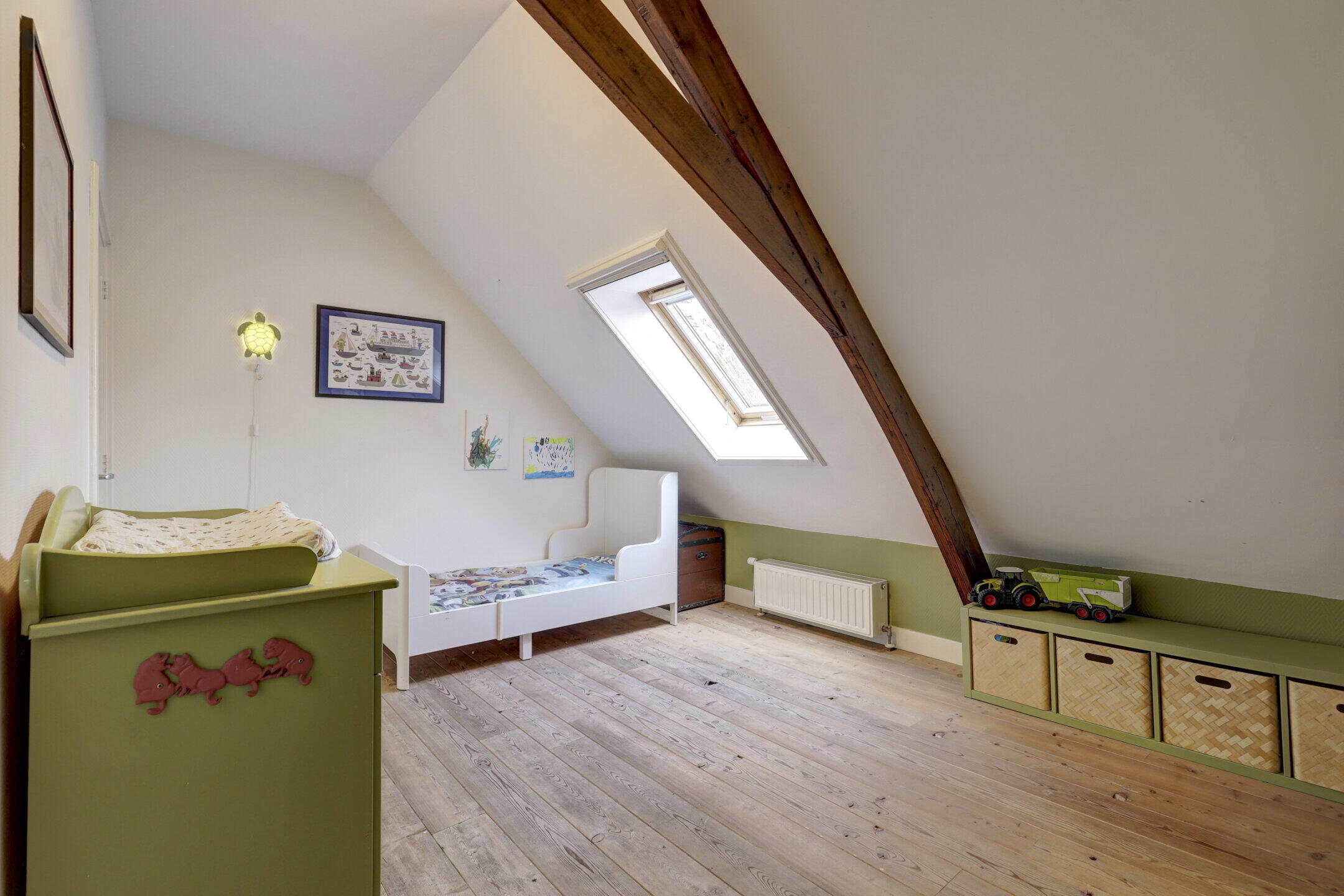 Bij binnenkomst voel je direct dat dit huis een verhaal vertelt. De woonkamer van 19m² is het hart van het huis, waar de hoge ramen zorgen voor een prachtige lichtinval en een verbinding met de groene omgeving. In 2023 is de woning naar een volgend niveau getild: een gloednieuwe keuken en badkamer, beiden voorzien van modern comfort en vloerverwarming. Terwijl de muren de sfeer van 1860 bewaren, zorgt de hybride warmtepomp en de 8 zonnepanelen ervoor dat je klaar bent voor de wereld van morgen.